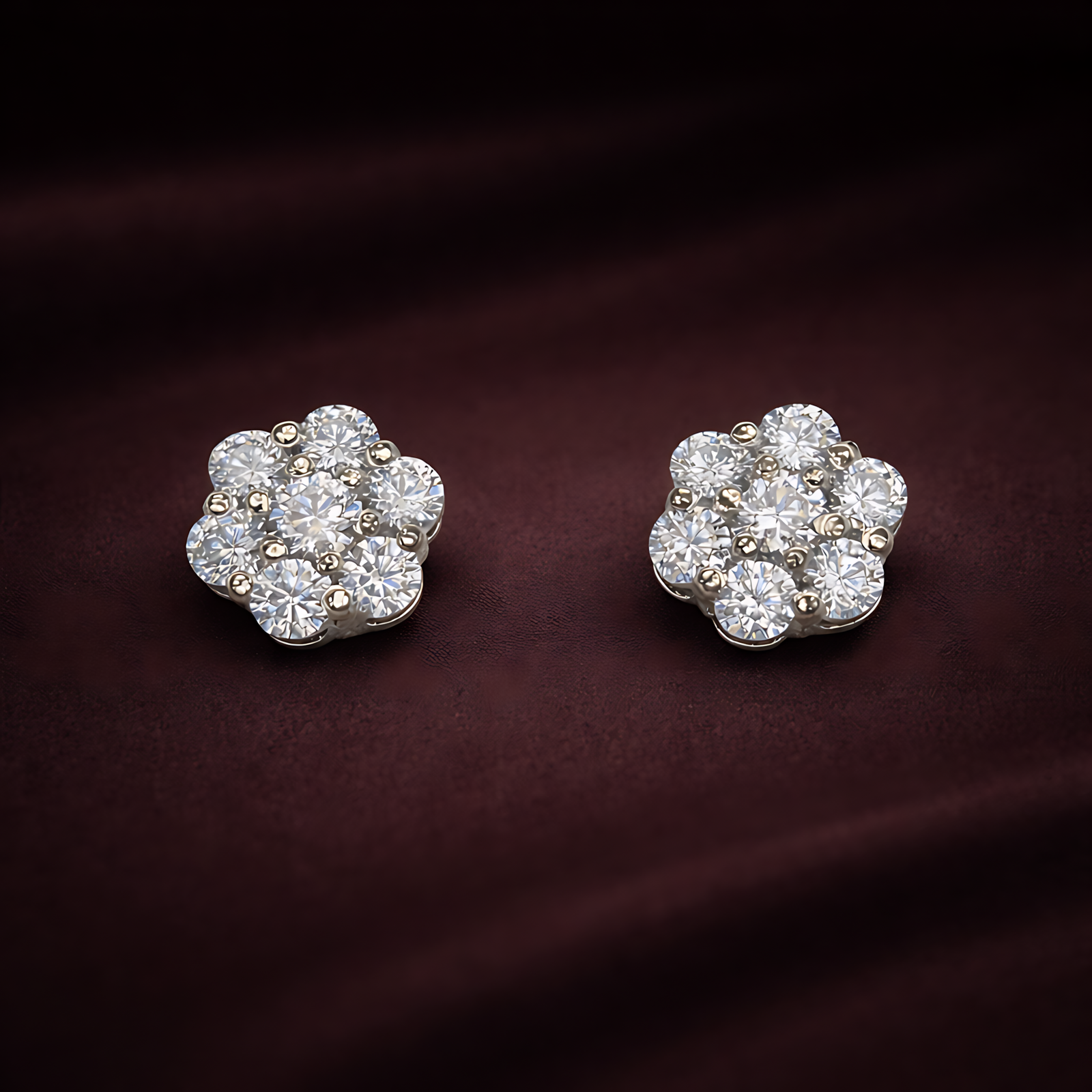A delicate earring designed with a group of round diamonds that come together to form the shape of a shimmering flower.