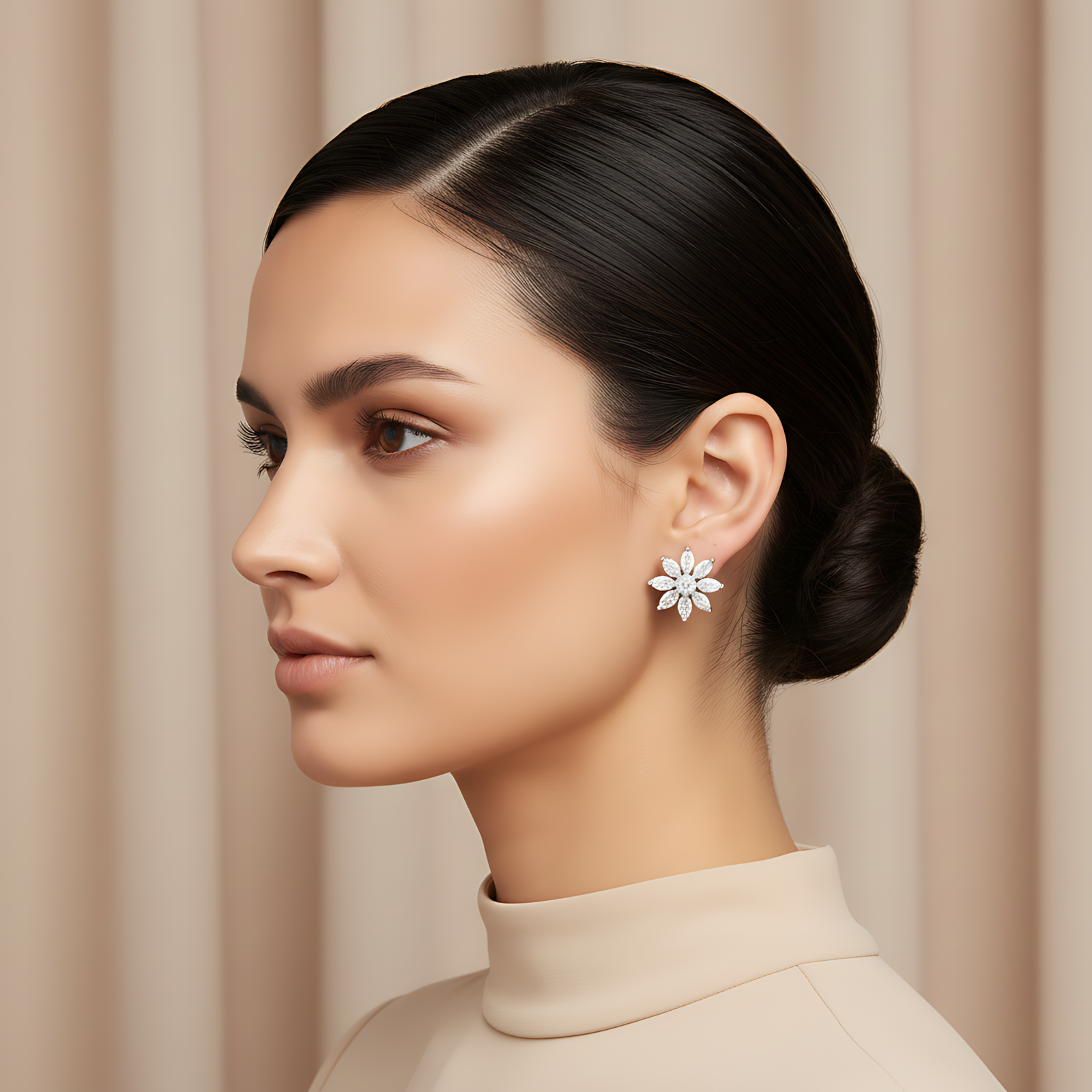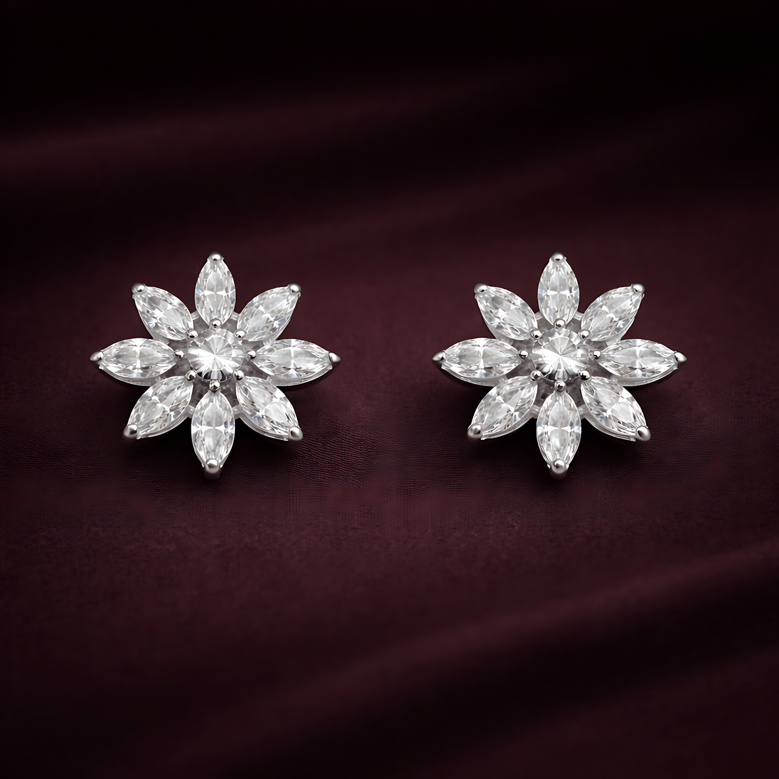 A striking earring featuring narrow marquise diamonds radiating from a center point, creating a dramatic spiked star effect.