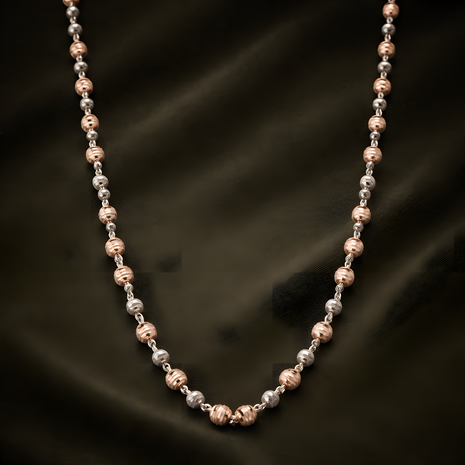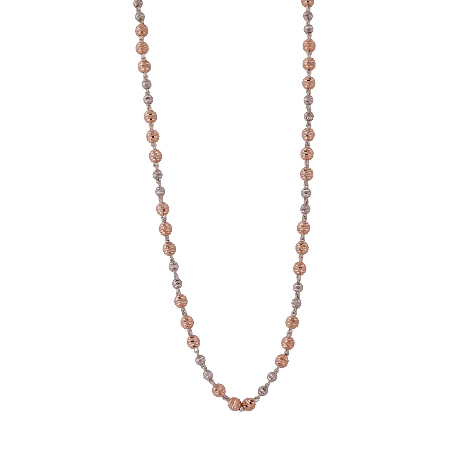 A classic necklace featuring small, faceted round beads in rose and silver tones that sparkle with every movement. The consistent spacing and shimmering texture offer a timeless look that easily transitions from day to night.