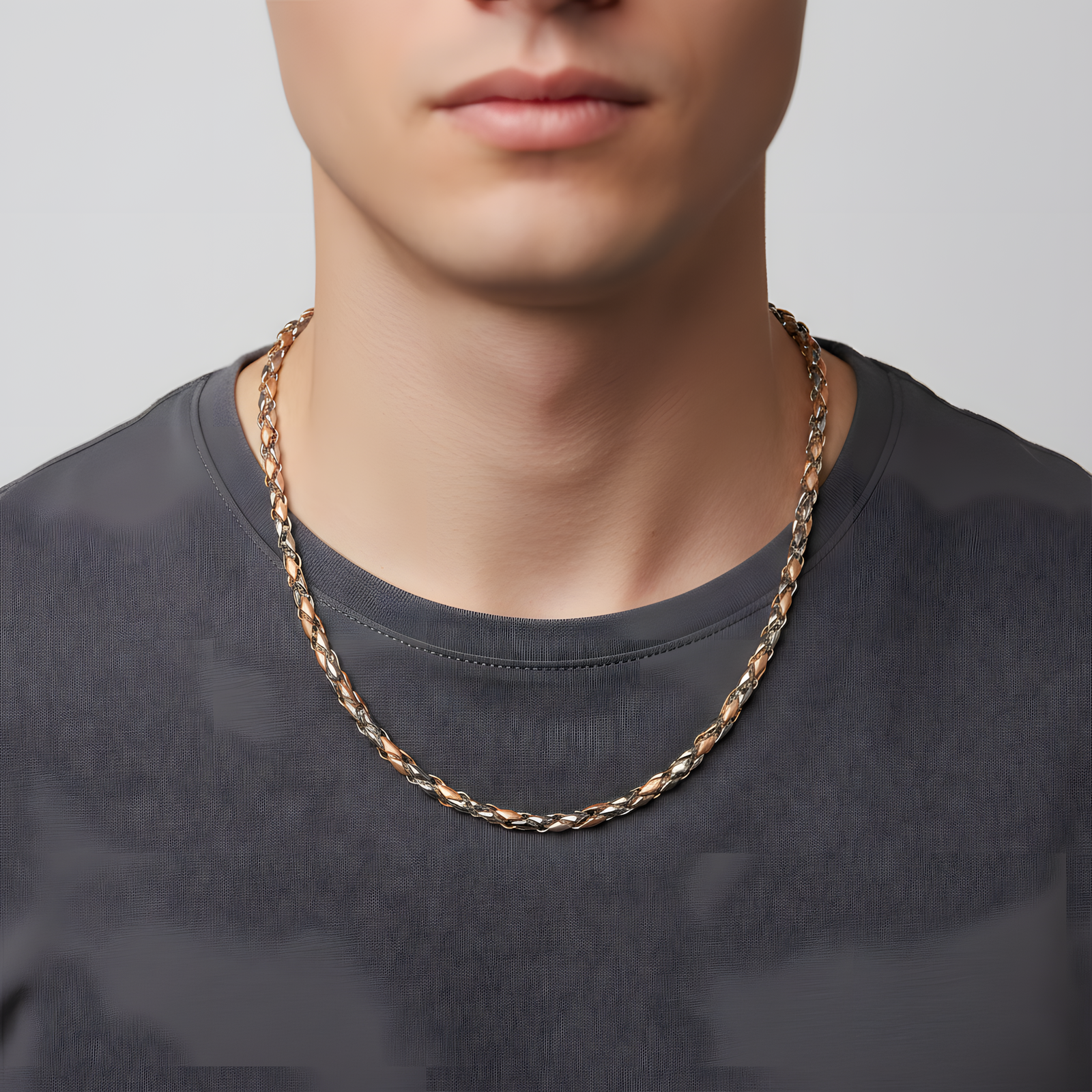 A sophisticated chain with a complex, woven-link pattern that offers a substantial feel and premium masculine aesthetic.