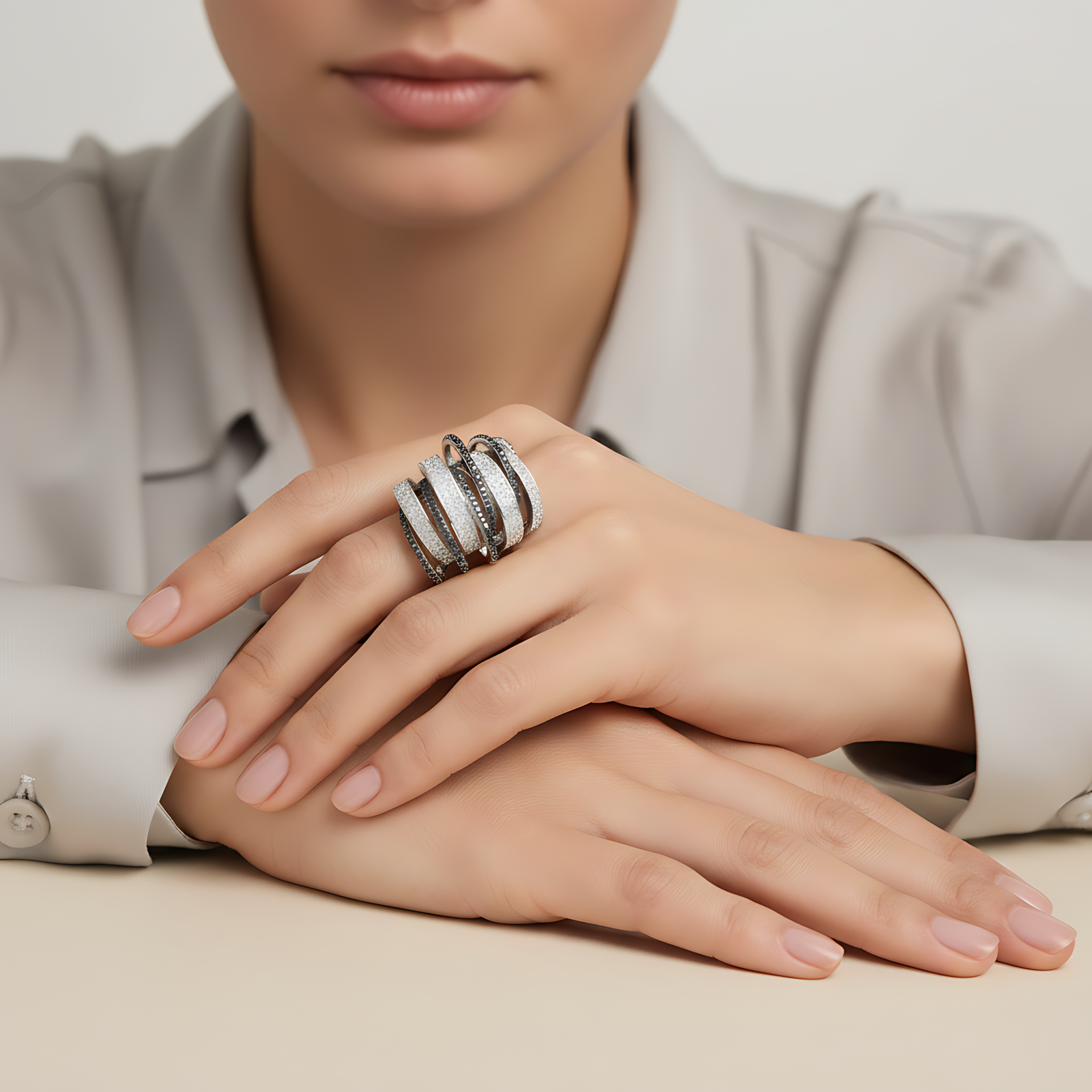Monochrome Multi-Band Statement Ring