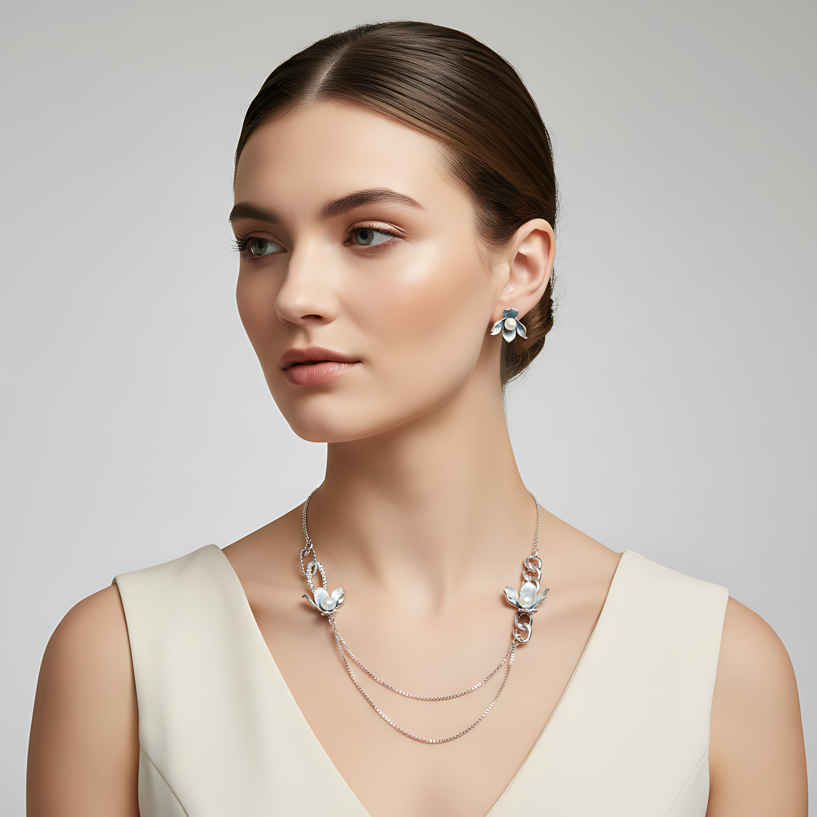 Asymmetrical Floral Necklace Set